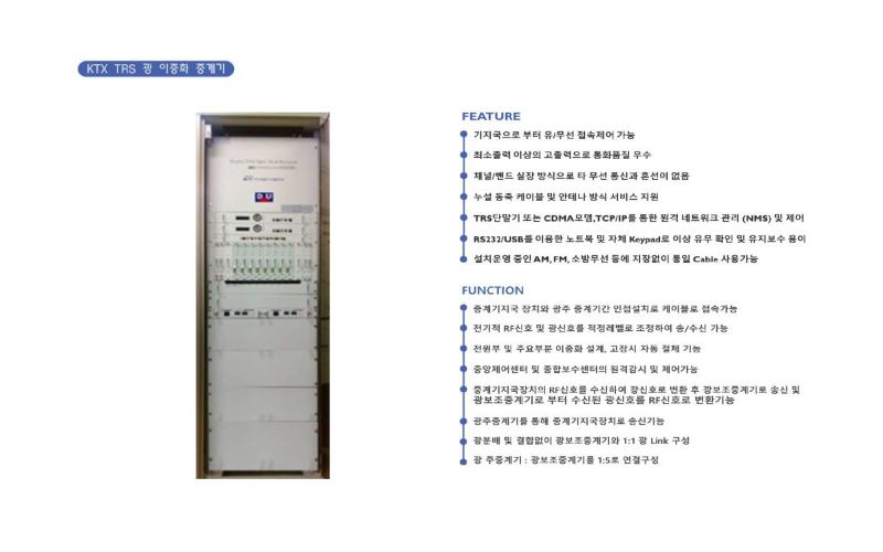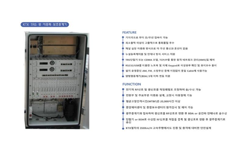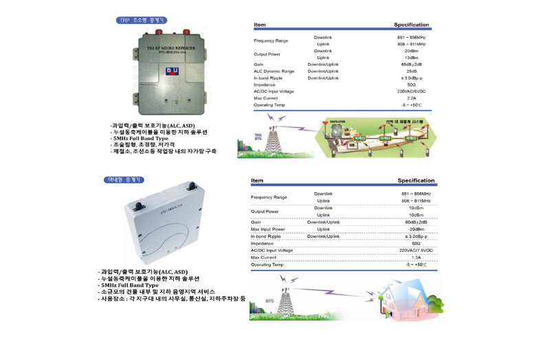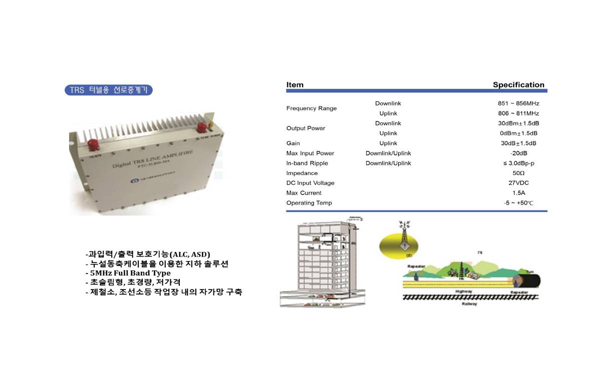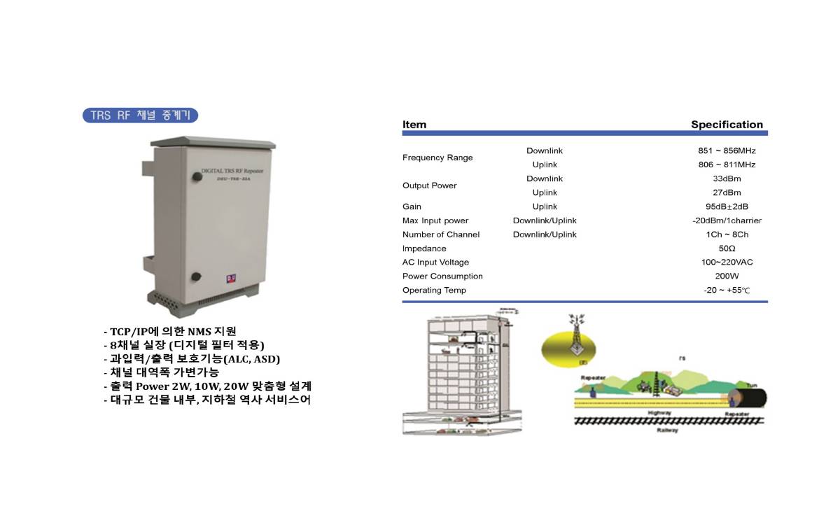 - 민간(I-DEN), 공공(TETRA)분야 및 TRS 사업 Total Solution 제공